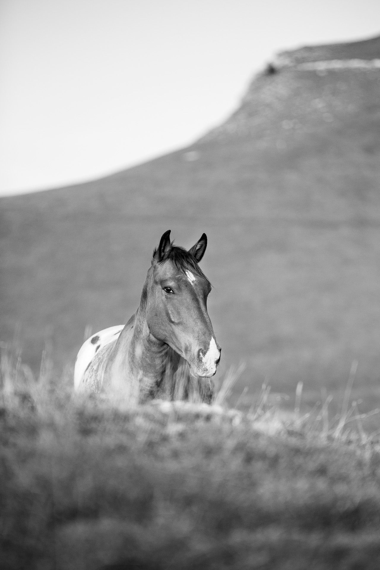 On the Font d’Urle plateau, in the summer pastures, this beautiful Appaloosa mare appears out of nowhere. Against a backdrop of mountain scenery, I feel as if I am at the heart of a western. Photographed in France, in 2015.