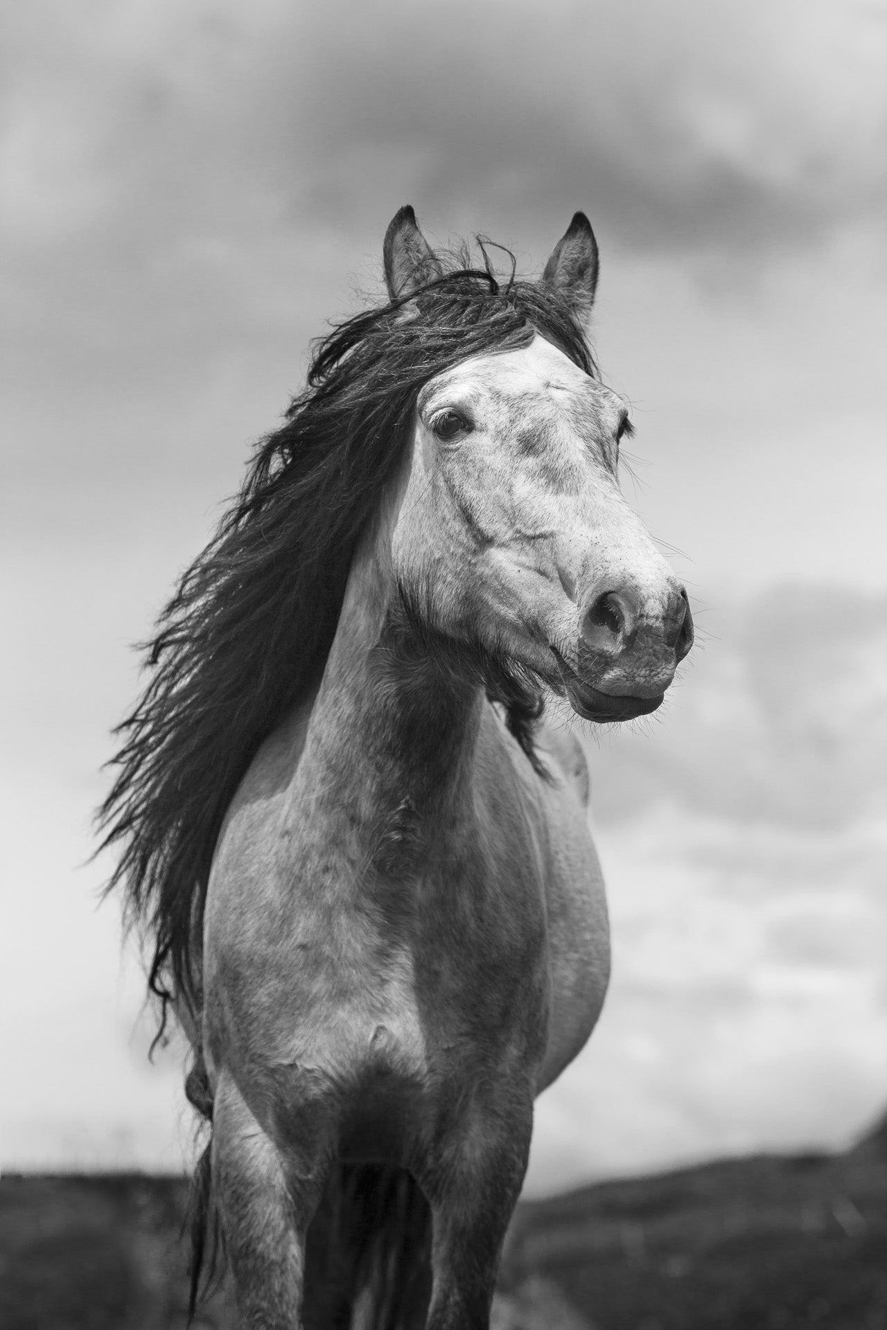 With her long black mane, she appears to me like a goddess carried by the wind through the heather… or like the shadow of a figure emerging from the depths of ages. Photographed in Scotland, in 2017.